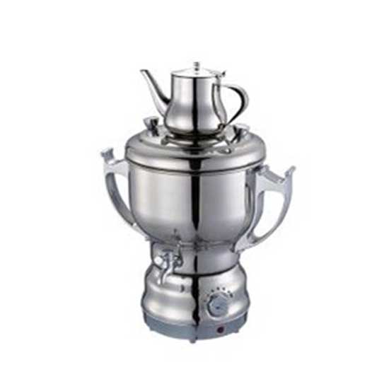 This showcased samovar comes with a stylish and complicated design. It boasts a stainless steel housing for a long service life. This stainless steel samovar is finely made with a teapot on the top for added convenience.