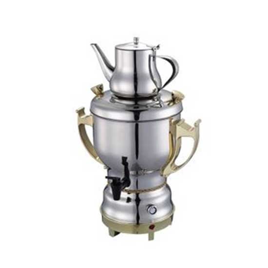This is a stylish samovar with great craftsmanship and delicate details. It is made of top-grade stainless steel for high durability. This stainless steel samovar comes with a silvery-and-golden design for an eye-catching look.