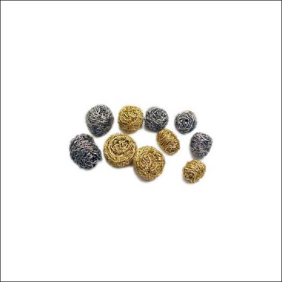 Scourers made of steel wool threads of silver or gold colour