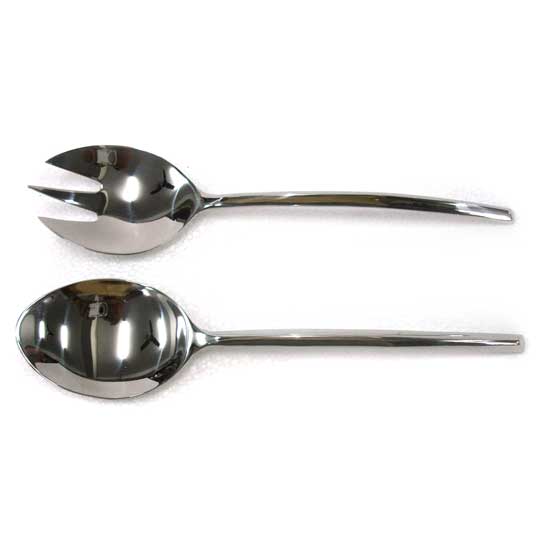 The polished server set features stylish spoon-shaped design with a contemporary cut out style. This set is finely hand-made and food-safe. This server set may be made to mix your salad or other food bowls in style.