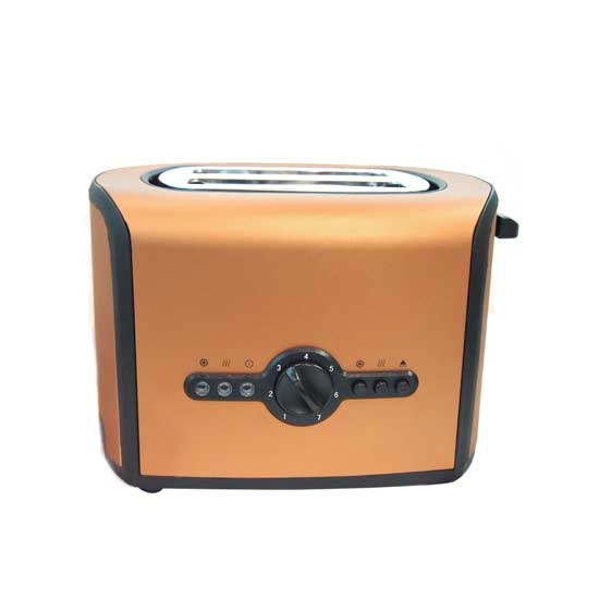 This chic and sleek bronze-toned toaster features a two-slice design. It is equipped with multiple modes to meet your various needs. This reliable toaster is made of stainless steel for sturdiness.