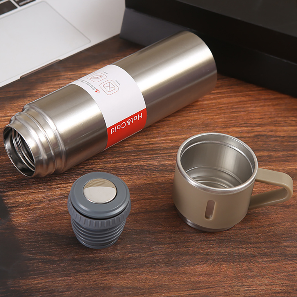 Stainless Steel Vacuum Flask with 2 Mugs includes the following features :