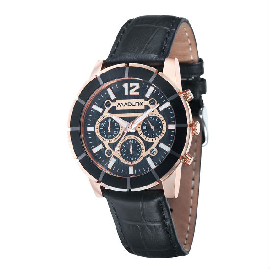 Pull off a sophisticated look at work with this dapper wristwatch. Treated with ion platings upon its stainless steel case, the heavy-duty watch tells time accurately with a succinct stick and Roman dial. Finished off with a genuine leather strap, the ravishing watch boasts to go well with both formal and informal attires.