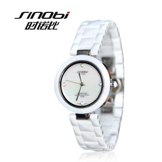 This wristwatch features a white-hued design on the dial, bezel and band for a pure look. It is durably made to withstand long time tear and wear. This alluring analog watch is sure to add some glamor to your look.