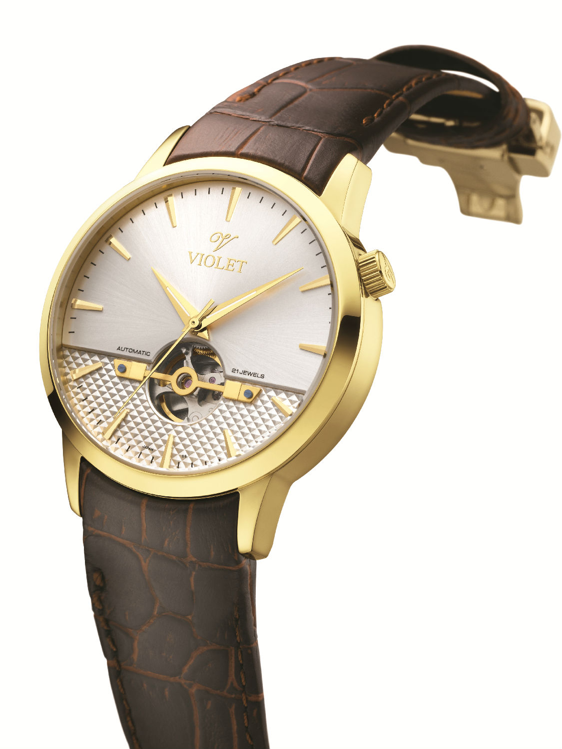 Keep time in style with this stainless steel watch. This men wristwatch features a round analog face encased in a stainless steel frame. The crocodile-textured leather watch band is fastened with a deployment buckle for a comfortable fit. This stainless steel watch is durably made to withstand daily wear.
