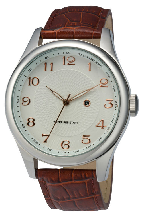 Complement your ensemble with this stainless steel watch in any occasions. Housed in a flawless stainless steel case in a round silhouette, this wristwatch boasts a clean-looking dial with legible Arabic numerical indices and three hands to tell the current time. The genuine leather strap further goes seamlessly with the piece and elevates your look with a decent flair.