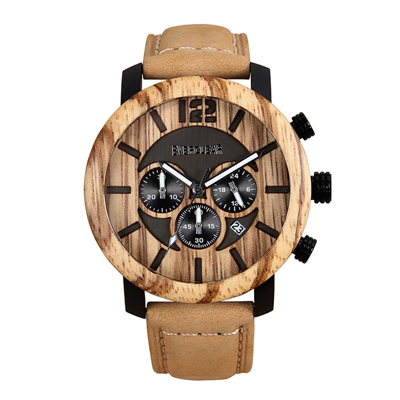 Men's Sports Watch with Wooden Bezel Custom Watch 6202G-WB