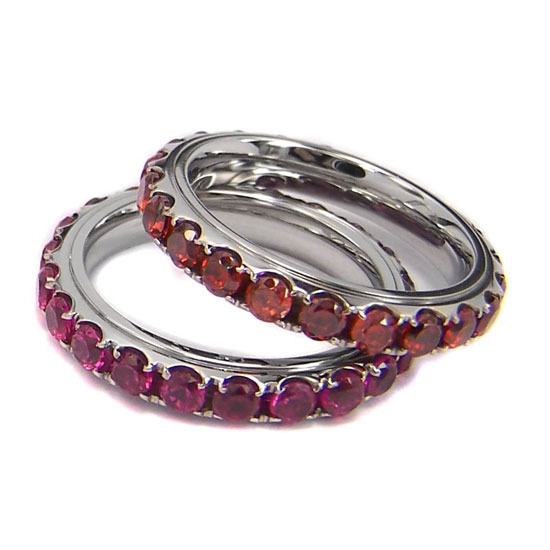 This gorgeous ring is studded with a row of round brilliant CZ stones in red color. Crafted of 316L stainless steel, the ring exhibits an highly polished finish. The stylish ring makes a great accessory for any occasion.