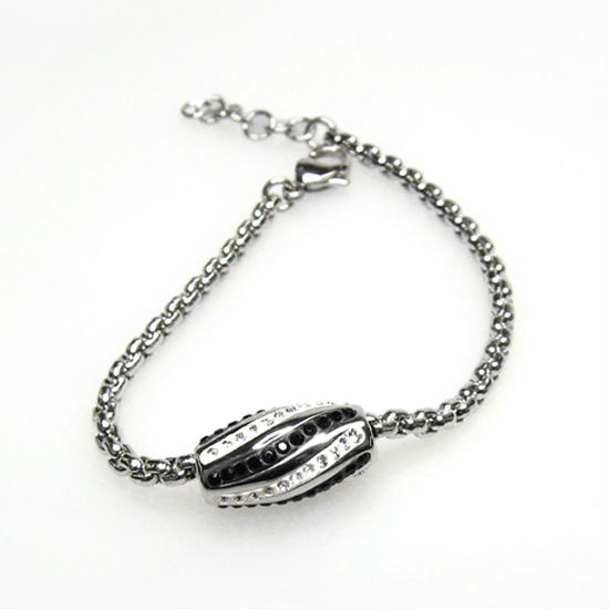 Stainless steel bead with engraved details and is studded with black and white crystals for added sparkle.