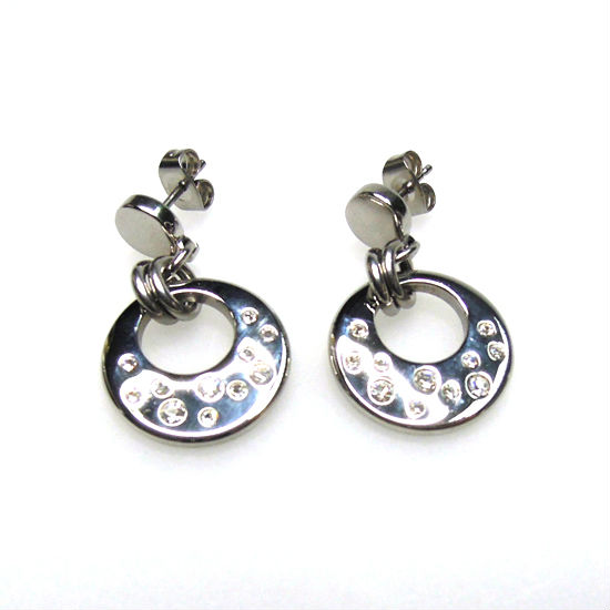 Stainless Steel and Crystal Dangle Earrings