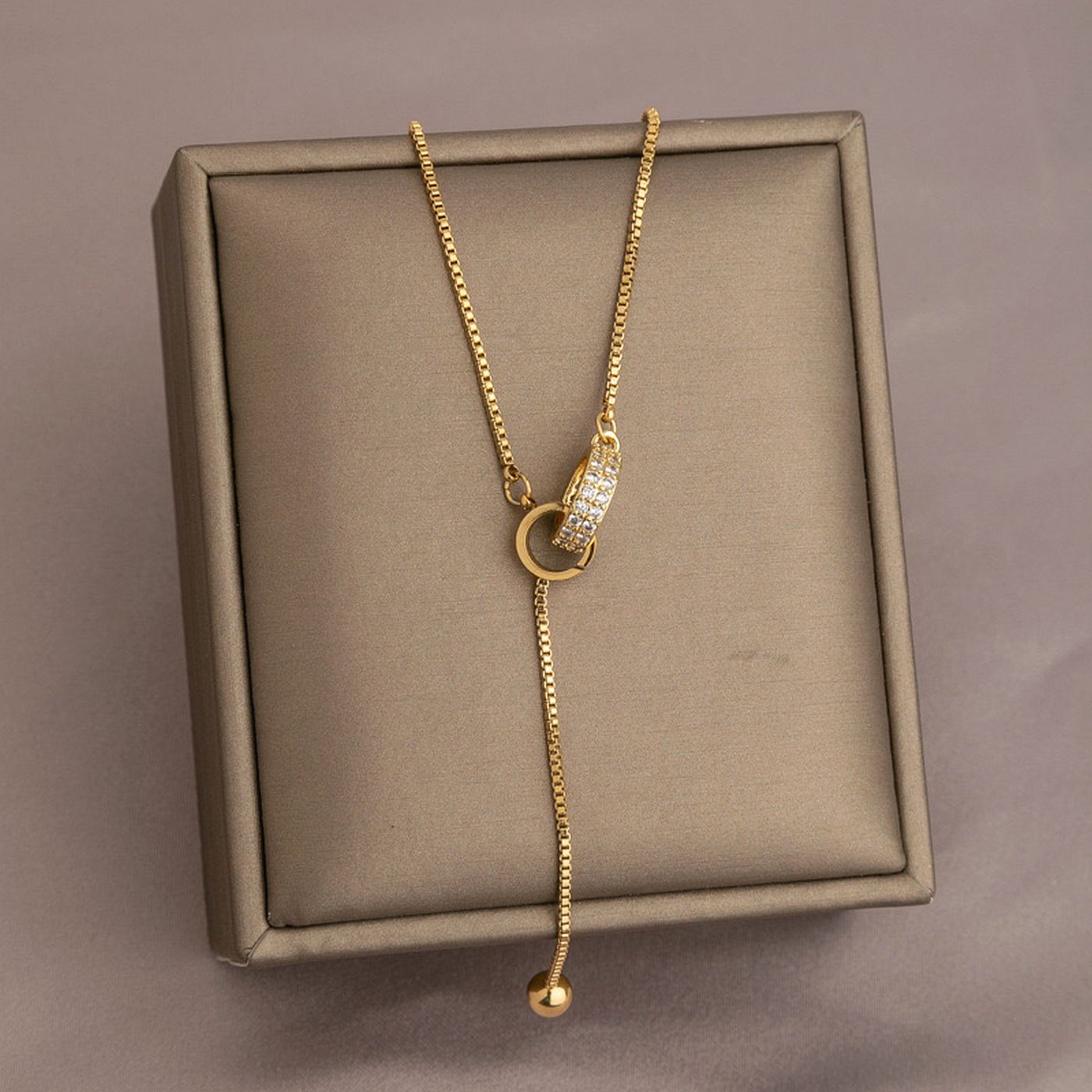 As shown is a high-fashion pendant alloy parts jewelry necklace.Stainless steel necklace with crystals circle pendant