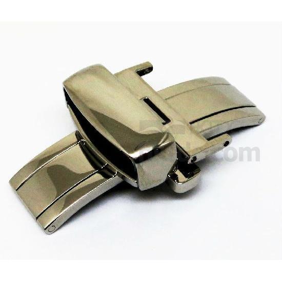 This watch buckle features a basic locking mechanism on the clasp. The electroplating provides various choices of stylish metallic colors. It combines the use of stainless steel for higher durability.