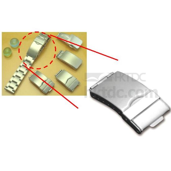 With the wide range of available sizes, this fold-over clasp would fit in a link-style metallic watch band with removable pin and screw. Other tailor-made designs are welcomed, including incision of logos and choices of metallic shades by electroplating.