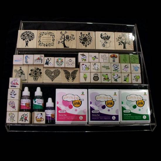 This comprehensive stamp set comes with stamps of different sizes, stamp pads and bottles of refill ink. This children's stamp set is made of high-quality solid wood and is carved with details. This stamp set is a suitable gift for artistic children.