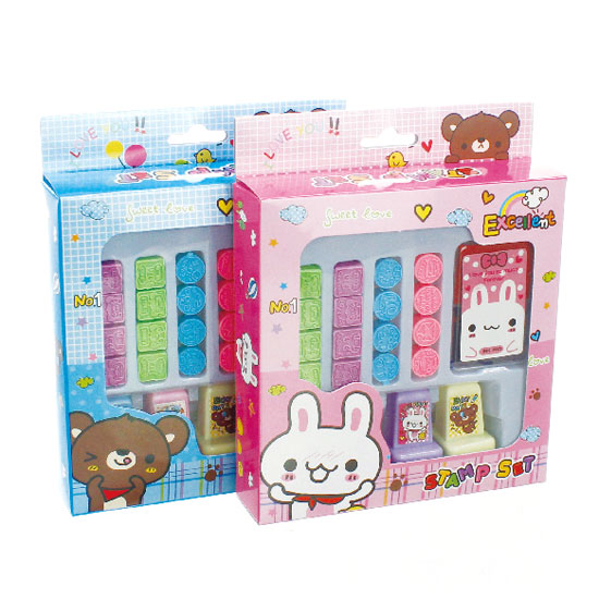 This is a high-quality stamp set that is finely packed in a color box with a window display. It is designed in multiple colors for an eye-catching look. This interesting stamp set offers hours of fun to your little kids.