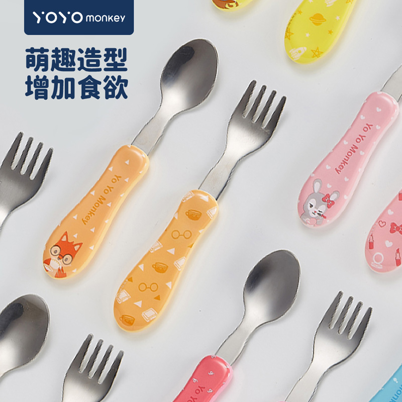 High quality stainless steel; designed scientifically and ergonomically according to children's eating habits; durable and bright in-mold-labelling decoration