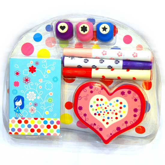 Highlighted here is a stationery set designed for kids. It is characterized by an eye-catching design in vibrant colors. This stationery set includes a bag for easy carrying.