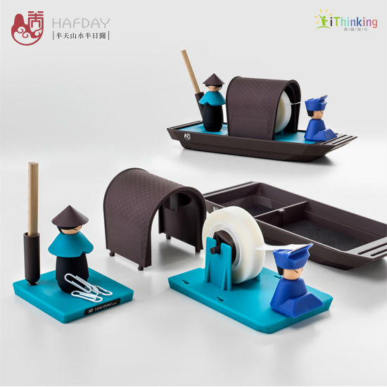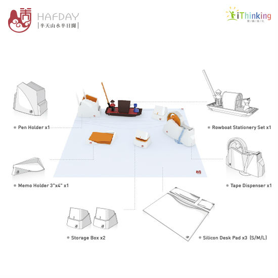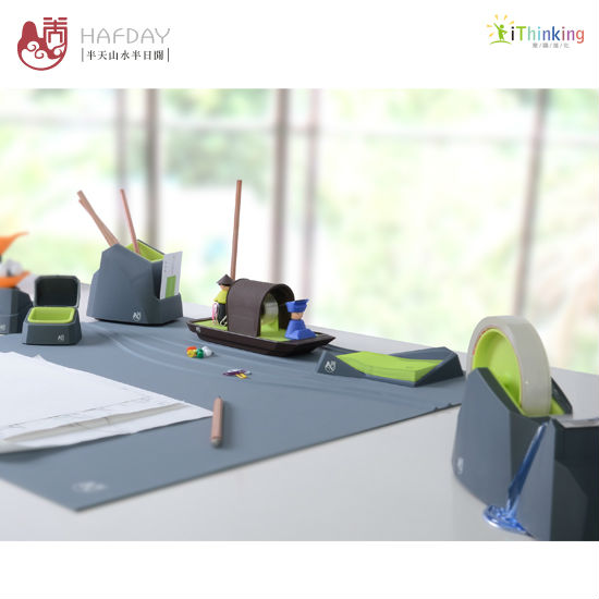 Inspired by an oriental landscape setting, this 9-piece stationery set features 2 pen cases based on the silhouette of rigged mountains. The sticky tape holder has a smart boat design with cartoonish rowers. Equally noteworthy is a memo holder rendered in canyon form. The entire desktop set can surely remind you lovely memories of the countryside.