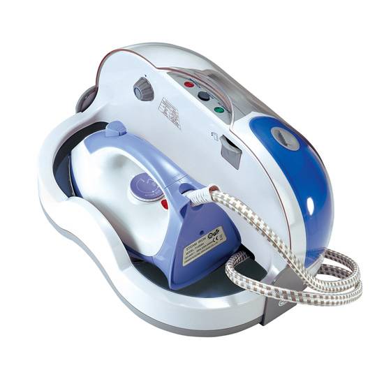 • This steam iron is connected to its supporting base for safe holding and digitalized controlling.
