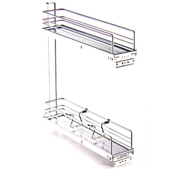 Featured here is a kitchen rack for storing different bottles. The quality steel construction is coated with silver powder for lasting beauty. This steel bottle rack makes a handsome addition to your kitchen.