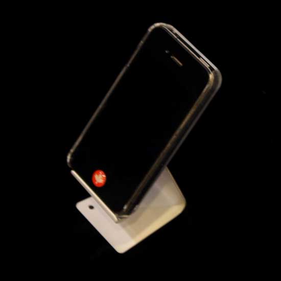 Displayed is a mobile phone holder coming with an elegant white appearance. The chic mobile phone holder is constructed from robust steel for better service. This mobile phone holder serves as a wonderful gift for friends.