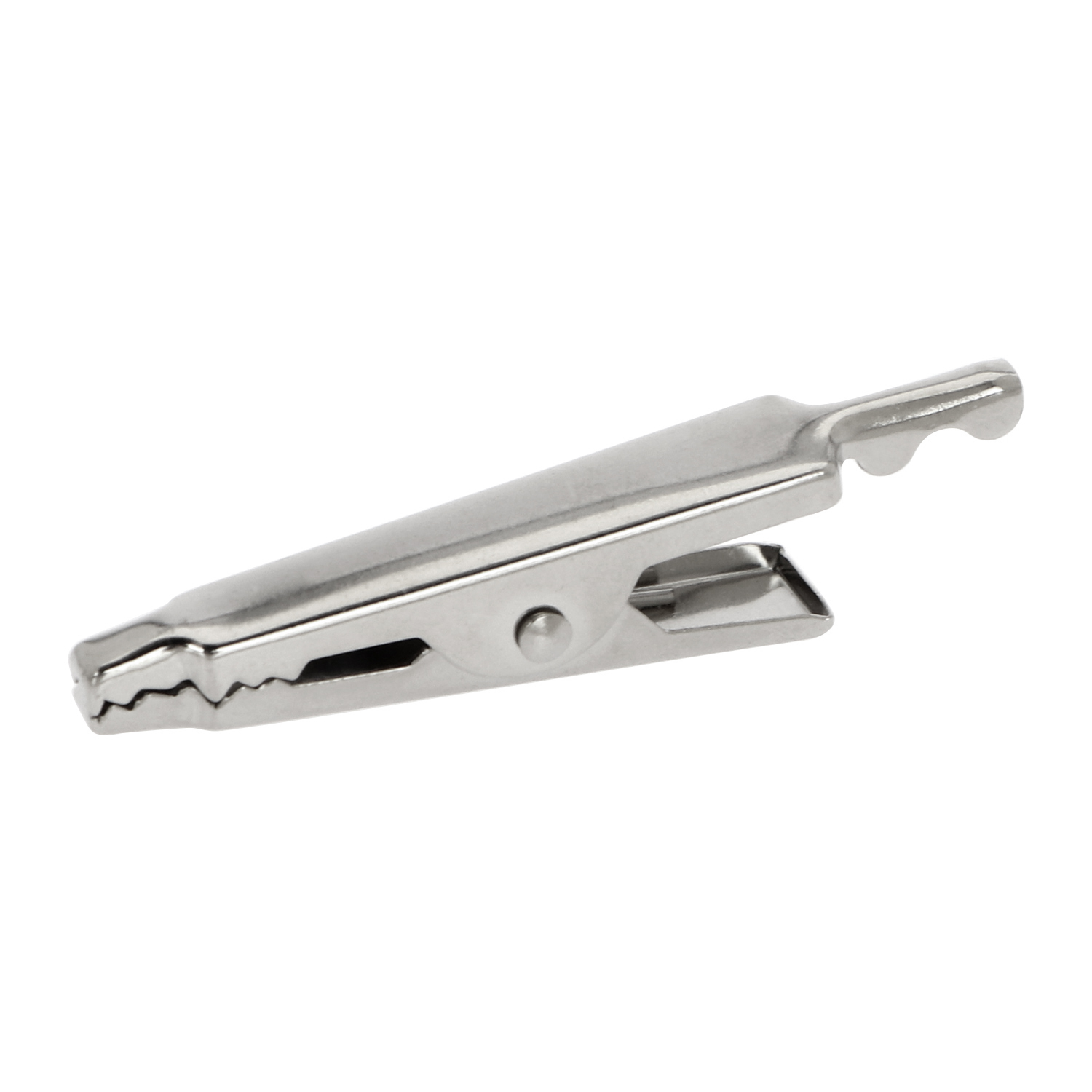 Provide convenient temporary electrical connections by using this spring-loaded alligator clip. It is made of steel and has serrated jaws to ensure a firm grip. This alligator clip can be connected to cables and is safe and versatile to use.