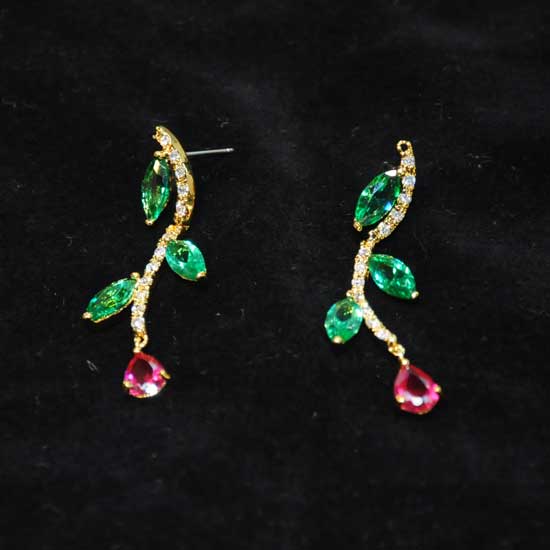 Presented is a pair of earrings finely made of colored CZ stones and 925 sterling silver. The dangling design gives this pair a romantic touch. Perfect your hair-do with this elegant pair.