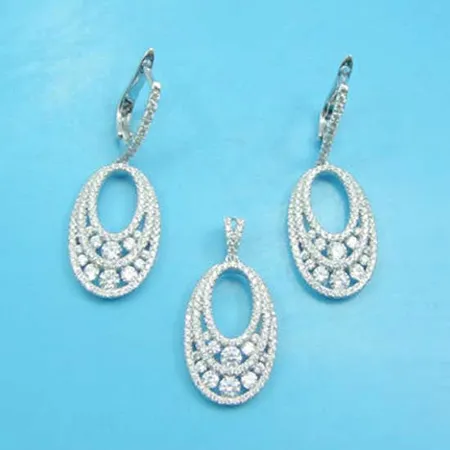The presented set of sterling silver jewelry is simple yet beautiful. A pendant and earrings are included for easy mix and match. Beautifully crafted CZ stones are used to add a sparkling accent to the jewelry pieces.