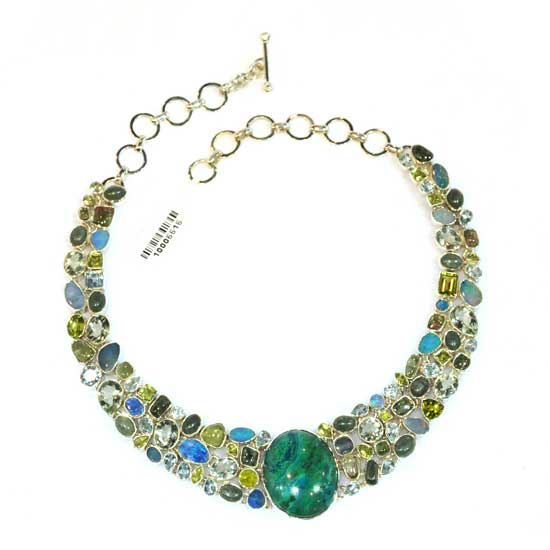 Featured here is a necklace designed with an exotic look. The necklace is made with 925 sterling silver and colorful semi-precious stones for an enviable look. Accentuate your summer look with this beautiful piece.