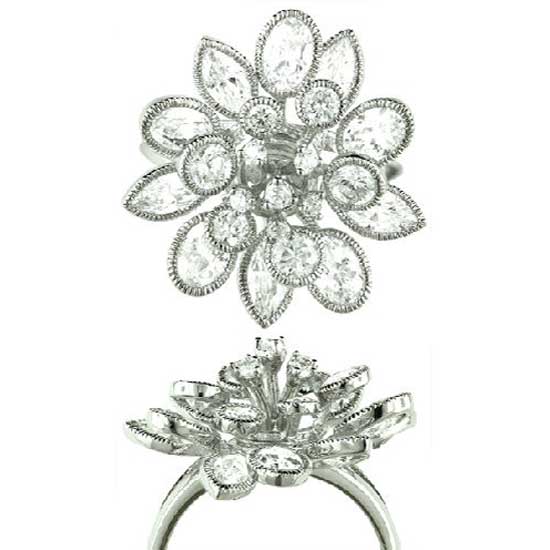 This ring is made out of sterling silver for a classy touch. It features a floral design with different shaped leaves embellished with shiny CZ stones. This feminine silver ring is a great complement to your elegant outfits.