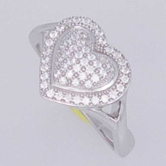 This stylish silver ring features a heart-shaped design on the top. The ring is fitted with CZ stones in a micro pave setting. The well-designed ring goes well with your fashionable outfits.
