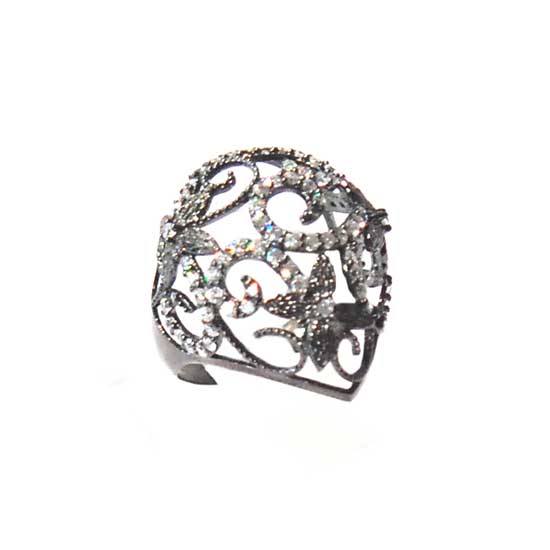 This sterling silver ring is fitted with shiny white stones. The unique ring goes well with your elegant outfits. It is a great addition to your jewelry collection.