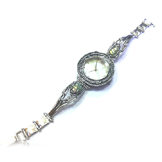 This is a sterling silver watch with a stylish appearance. It is finely made with great craftsmanship and delicate details for an elegant touch. This analog watch is crafted with a round dial, two hands and accurate hour markers for easy time reading.