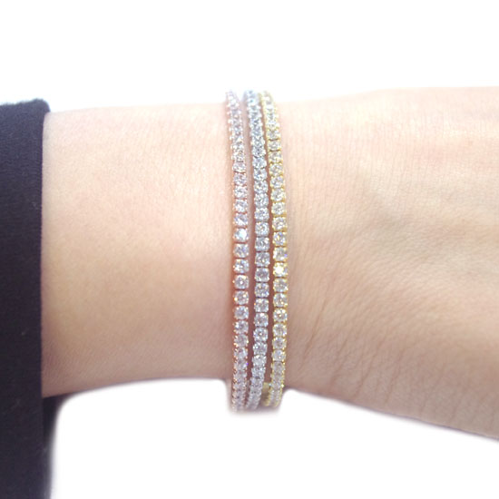This trio-hoop bracelet features dozens of cubic zirconia stones for extraordinary glamour. The silver hoops are decorated with platings of different colors for a rich effect. Such a simple and unpretentious design is great for ladies of all ages.
