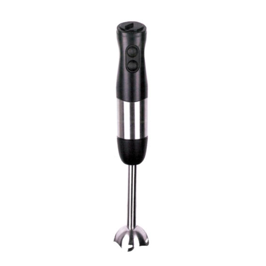 Displayed is a stick blender coming with a silvery and black finish. It is designed for blending meat and vegetables. It is fitted with 2 soft touch buttons for easy operation.