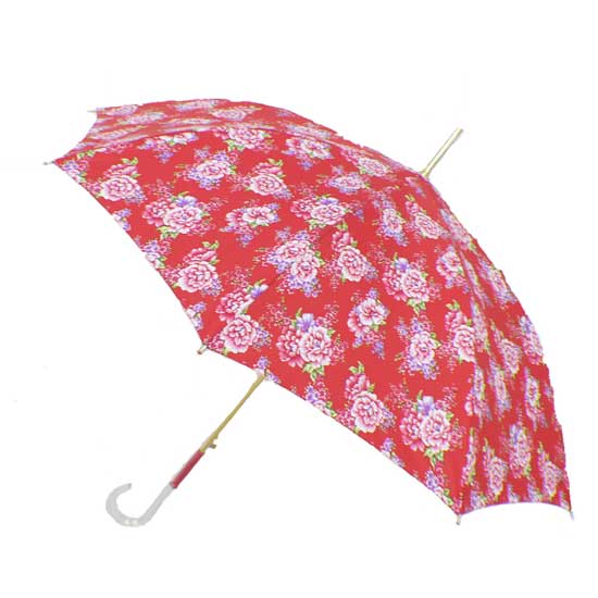 This pictured umbrella gives a delightful design in red with rose prints. The stick umbrella features a golden aluminum shaft for enhanced durability. Have a nice mood in rainy days with this stick umbrella.