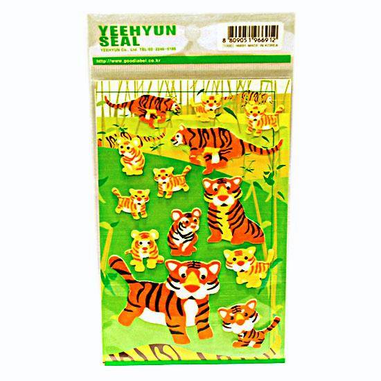 The sticker set boasts a tiger theme. The felt construction delivers a soft touch. This cartoon sticker set is a great gift for your kid.