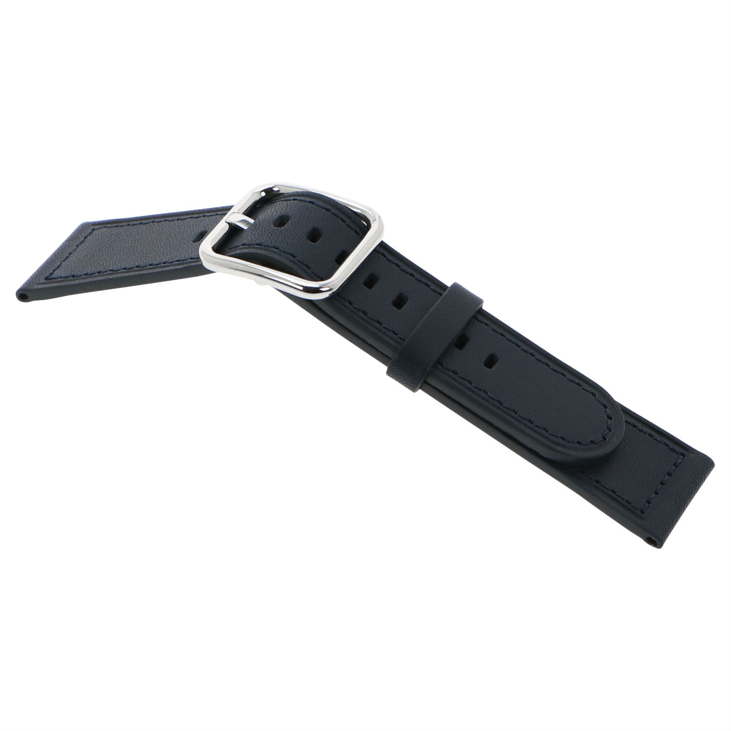 Bring a modern and sleek touch to your new timepiece collection with this vegetable-tanned leather watch strap. Rendered in a flat and clean design, this trap exhibits matching stitches and slightly etched lines on the sides for a subdued and modern appeal. Echoing the neat design, a sheeny buckle with a slender silhouette is employed. Finished off with a thin keeper, this band is for all modern watches.