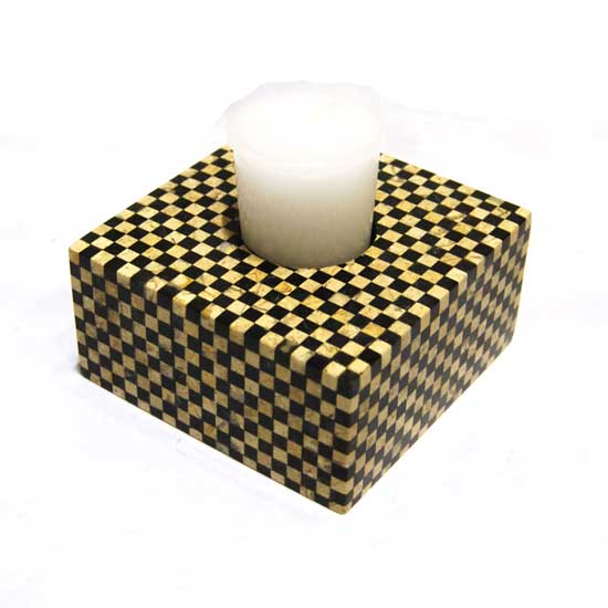 The stone candle holder boasts classic checks for an antique style. It comes with an indentation at the center to fit a tealight candle. Spruce up your room with this stone candle holder.