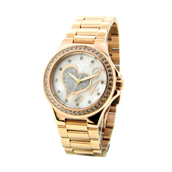 - Material: stainless steel with IP rose gold plating (band and case), PP stones (case), MOP with silver glitter with 11pp stone (dial).