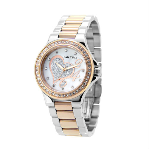 Give this exquisite wristwatch to your loved ones as a memorable and durable love statement. Demonstrating mastery craftsmanship, its eye-catching golden glitter highlights its link watch band and various fine details, including embossed heart-shaped dial adornment and dainty hour markers. Its exquisite glamor makes this bracelet watch a popular gift choice as the ideal lover watch pair.