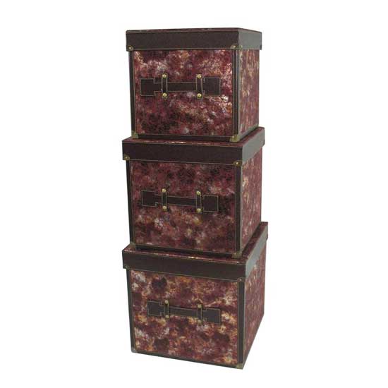 This displayed rectangular box features a retro-style exterior with attractive patterns and dark brown edges. It is made of fabric and paper for a unique touch. This durable and good-looking box is ideal for home storage use.