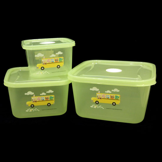 Featured here is a set of plastic storage boxes in gradient sizes. The translucent green boxes are designed with colorful cartoon graphics on the bodies. Keep your home tidy and organized with these excellent storage boxes.