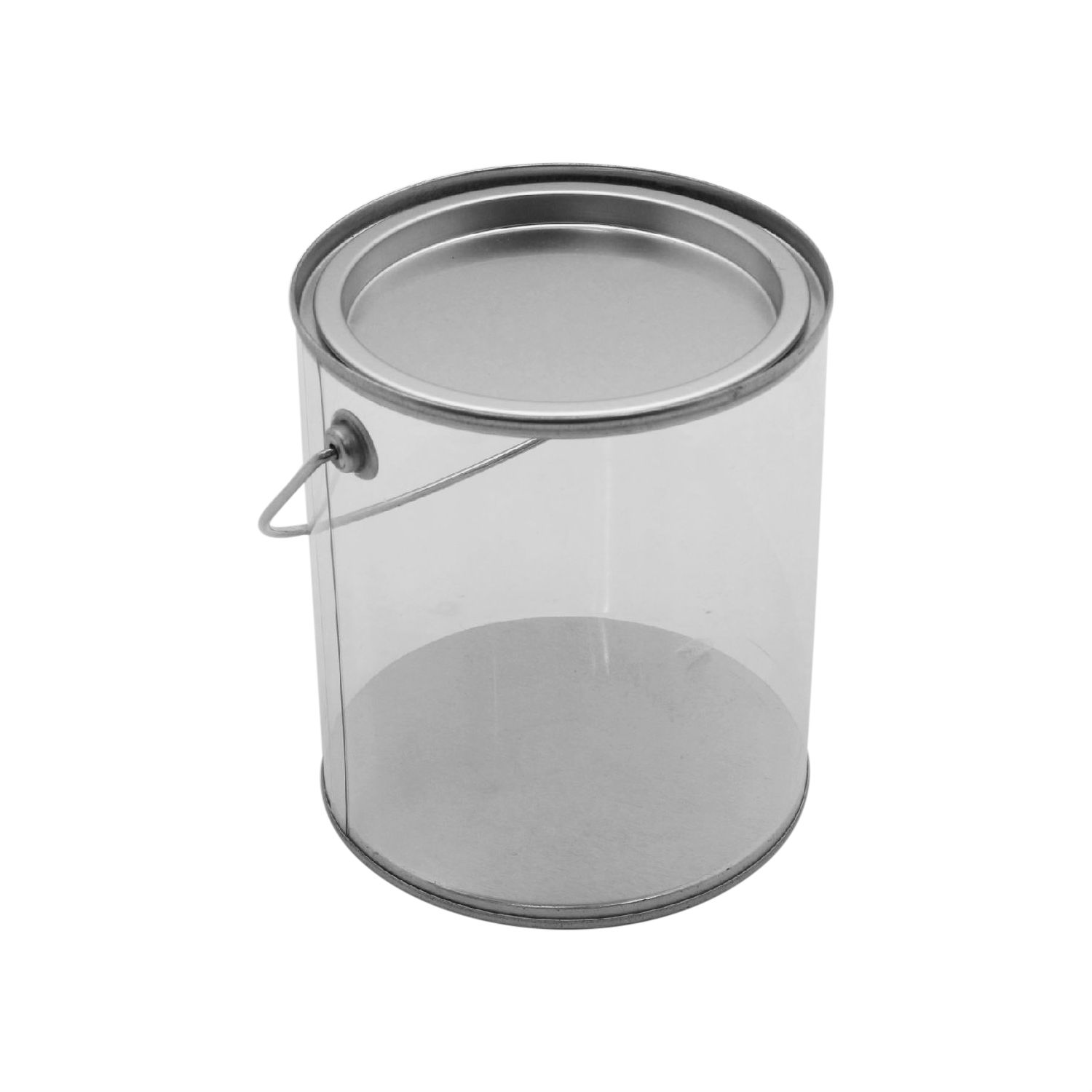 This container features a crystal clear design, cylindrical shape, and generous capacity. It is fashioned with a silver top and bottom for a minimalistic design, matching any interior style seamlessly. The lid seals the contents for better preservation while the handle enables ease of carrying.
