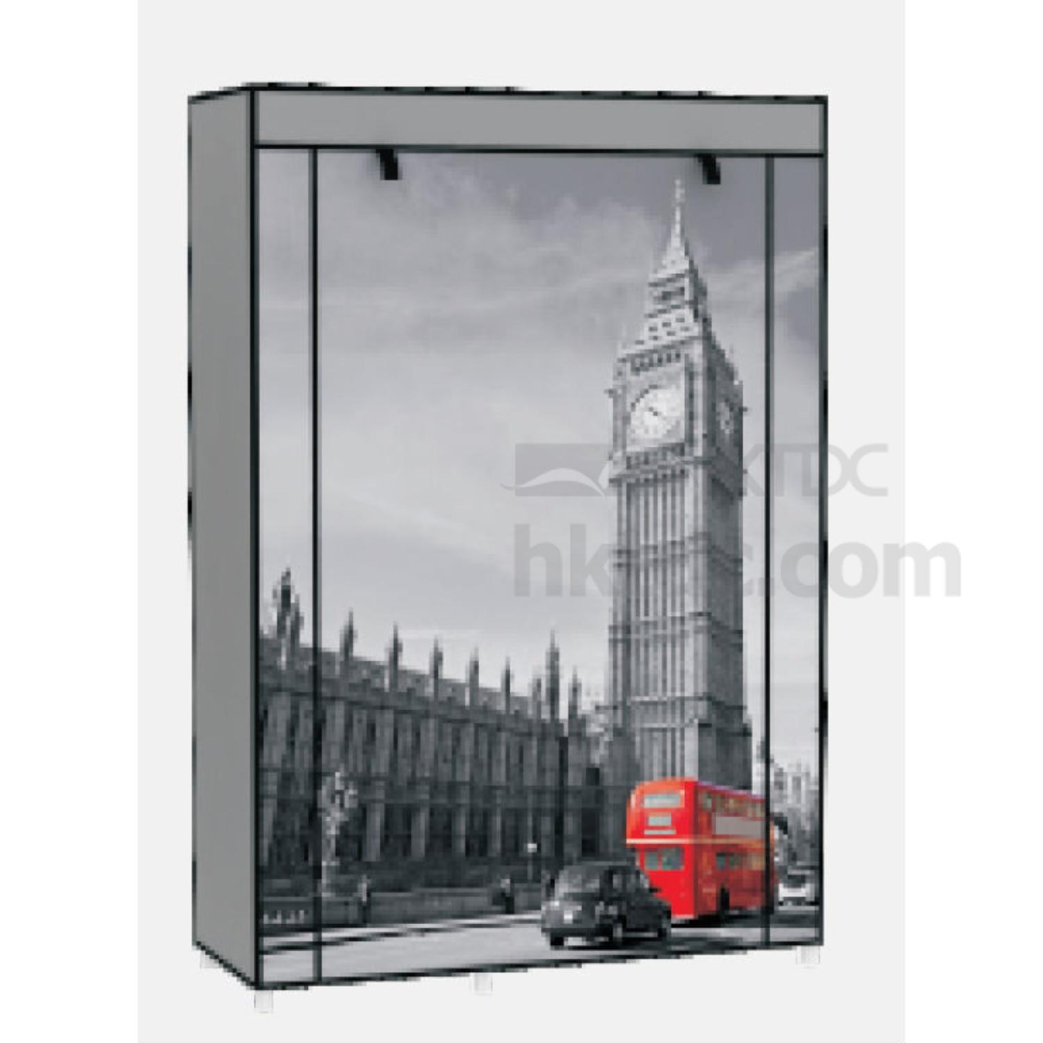 Store your clothes, shoes and other items with this elegant and durable storage wardrobe. It has metal tubes with plastic connectors and can easily adjust the height of shelves. This storage wardrobe has a roll-up door and is decorated with black and white city themed patterns for a classy look.