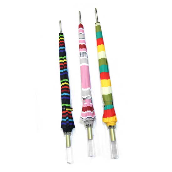 This displayed straight umbrella features a colorful printed pattern for an attractive look. This straight umbrella offers great protection in rainy days. It is easy to open and close.