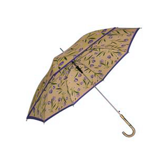 This straight umbrella is finely made with a chrome-plated metal frame, flute ribs and plastic tips. It is highly useful in both sunny and rainy weather. An exquisite floral pattern fills the canopy for a decorative touch.