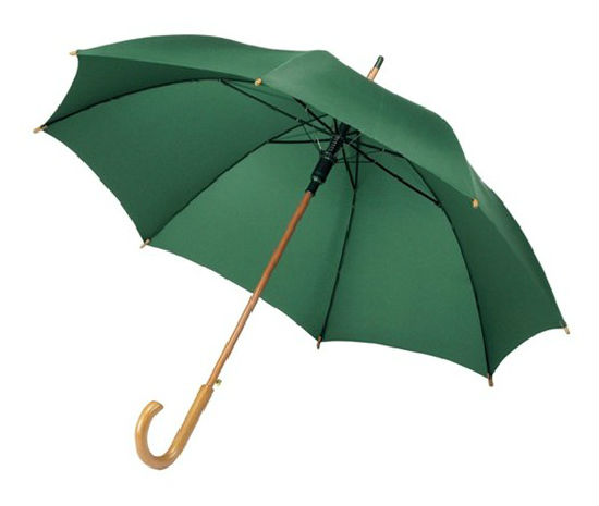 Crafted of durable 190T pongee fabric, this straight umbrella keeps your dry with maximum comfort from wet weather conditions. Depicting a large canopy of electroplated metal rib framing, it features a wooden shaft and a crooked handle for easy carry.