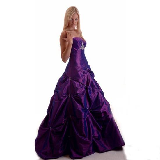 The strapless ball gown features beading and embroidery details at the bust for a flattering look. The hand-pleated details at the full skirt area add details to this purple dress. This elegant strapless evening gown is perfect for formal occasions.