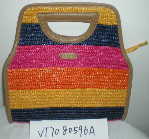 The rattan bag comes in a trapezoid shape decorated with a colorful pattern of stripes creating a touch of activeness. To match with the summer style of this bag, its handles are in half-moon shape and are made of light brown materials.